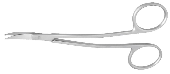 A unique curvature allows easy access to the tightest areas. One blade is Serrated to hold tissue when cutting. (4 1/2″ / 115 mm)
